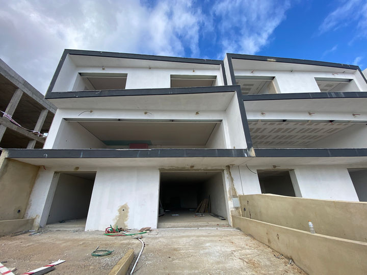 A construção contempla uma moradia em banda, T5, dividida em três pisos. Sendo o piso -1 destinado à garagem, com um lavabo de apoio, arrumos e os acessos verticais aos restantes pisos.